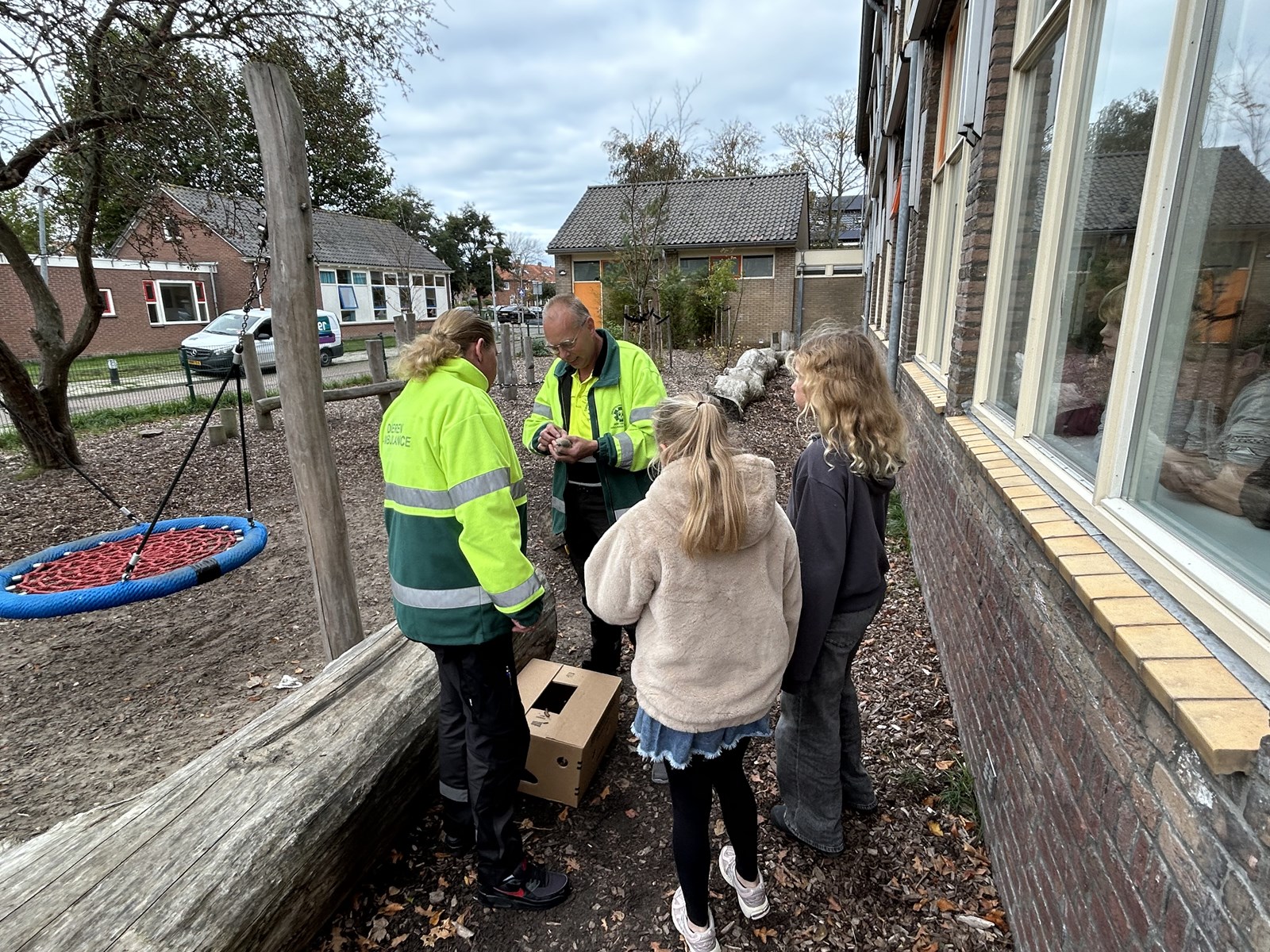 Bij ons op school leren we zorgen voor onszelf, de ander en onze omgeving. Dus wat doe je als je een gewonde duif vindt? Inderdaad, dan bel je de dierenambulance om hem op te laten halen.