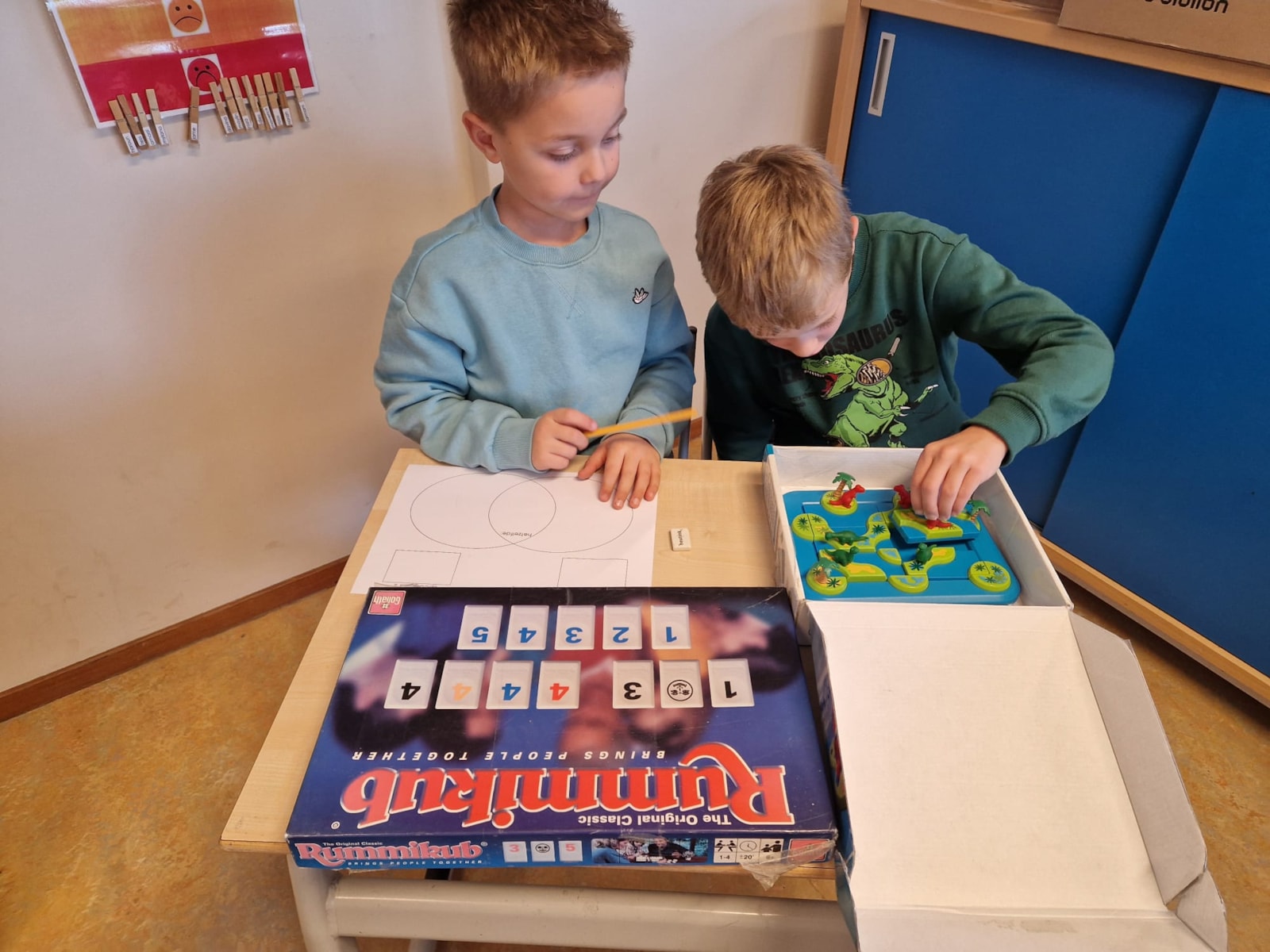 In groep 3 en 4 leerden de kinderen speelgoed en spellen vergelijken met behulp van een Venn-diagram. Samen bekeken ze twee soorten speelgoed en dachten na over wat hetzelfde is en wat verschillend is. Zo leerden ze hun gedachten overzichtelijk te ordenen en duidelijk te maken.