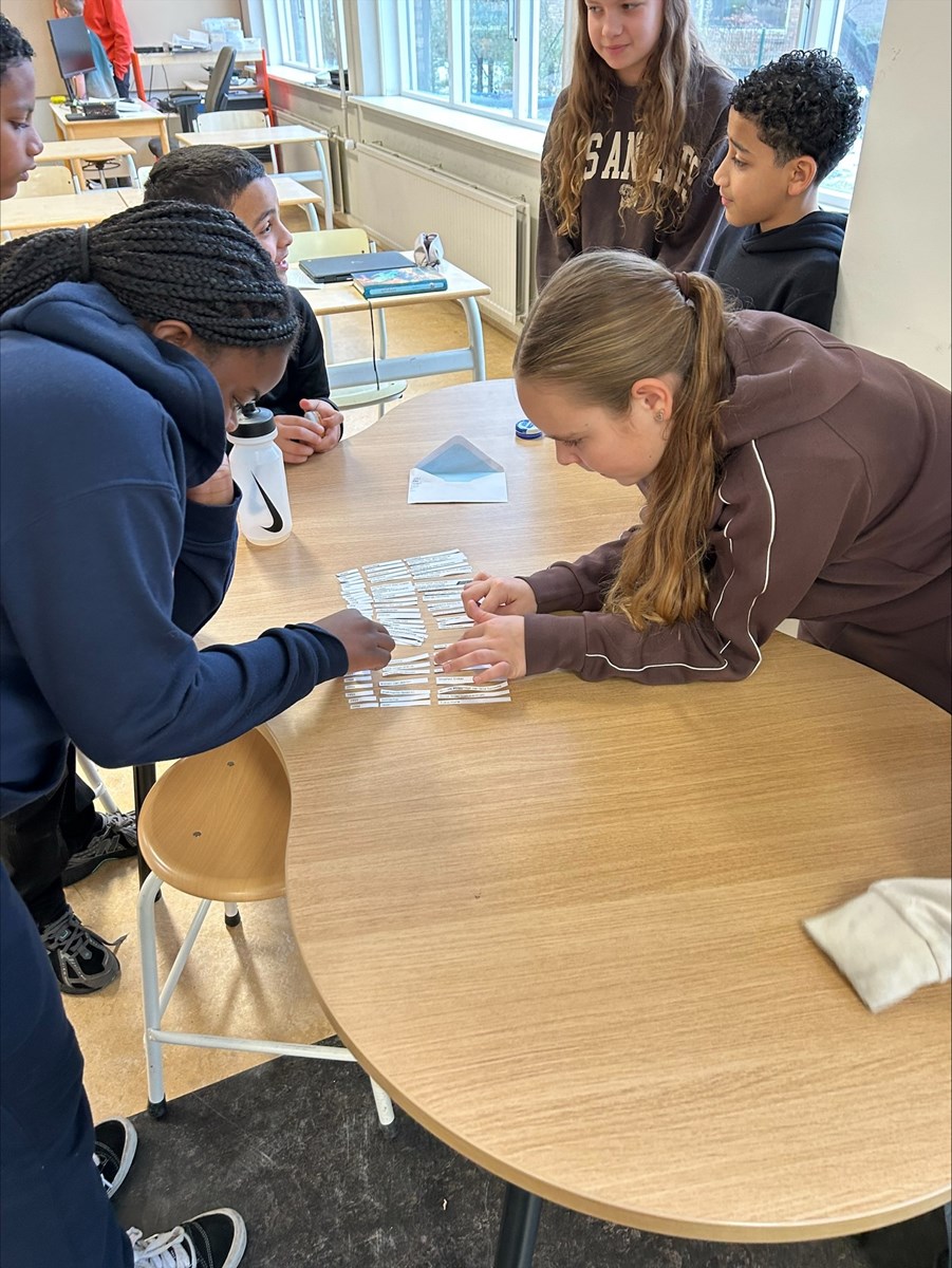 U raadt het al, de keuze werd een team vormen met vrienden/vriendinnen. En dan raadt u ook al hoe de opdracht ging: gezelligheid en spelen. Dit resulteerde voor een groepje in het 3 keer opnieuw moeten doen van de opdracht voordat we er een foto van konden maken. Elk groepje heeft een evaluatie gehad met de leerkracht na het maken van de opdracht.