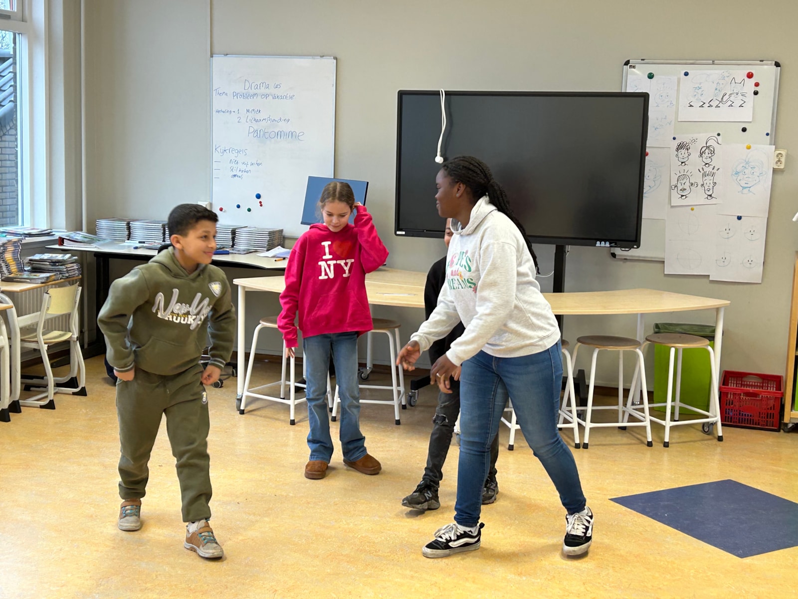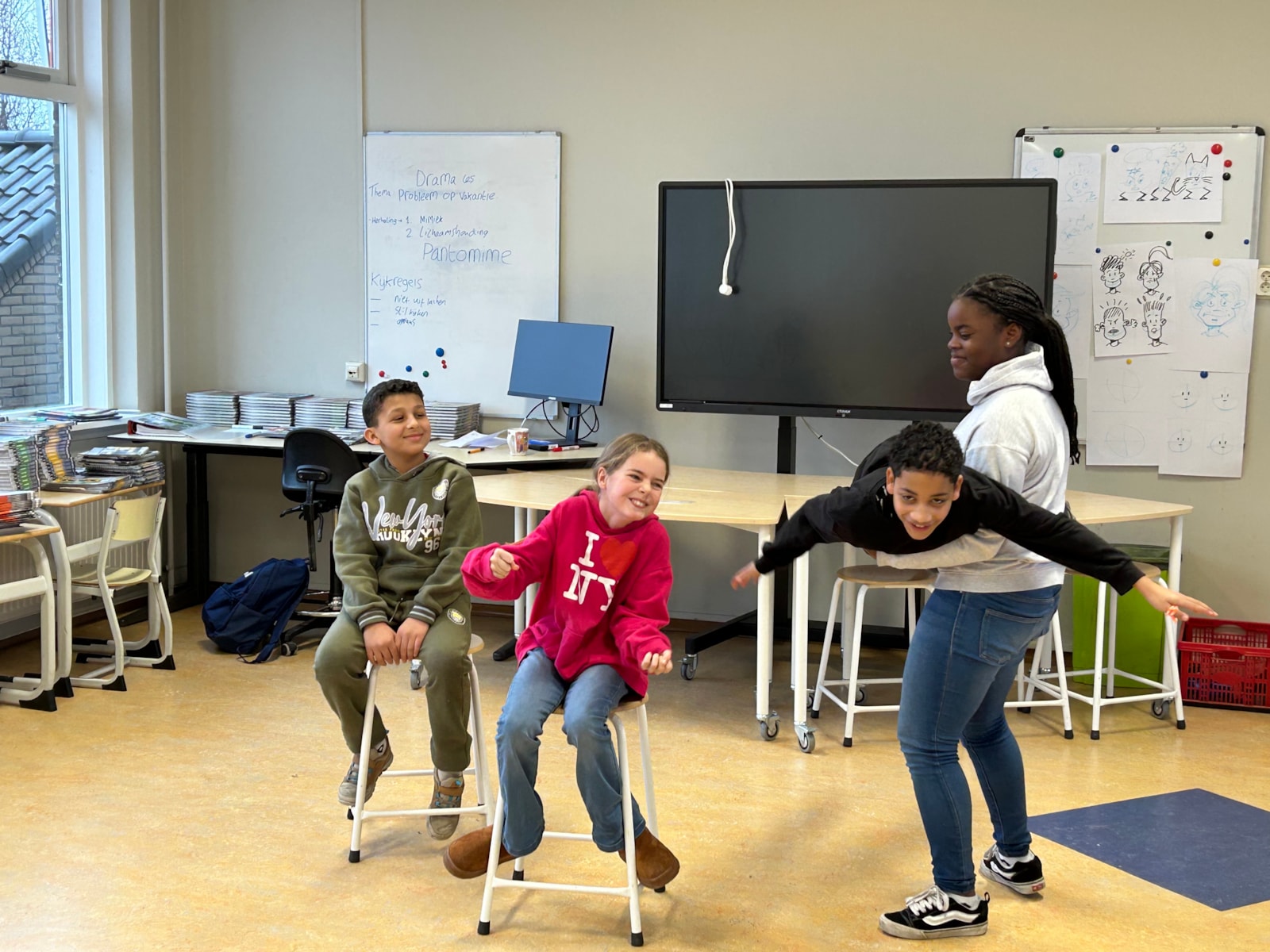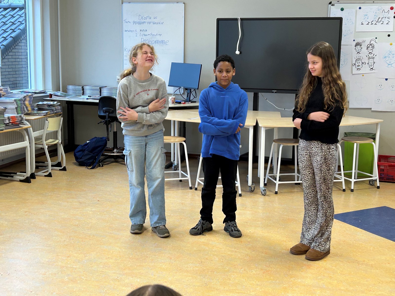 Meester Nick gaf vandaag een dramales aan groep 7/8. Dit onder toezicht van iemand van meester Nick zijn eigen school.