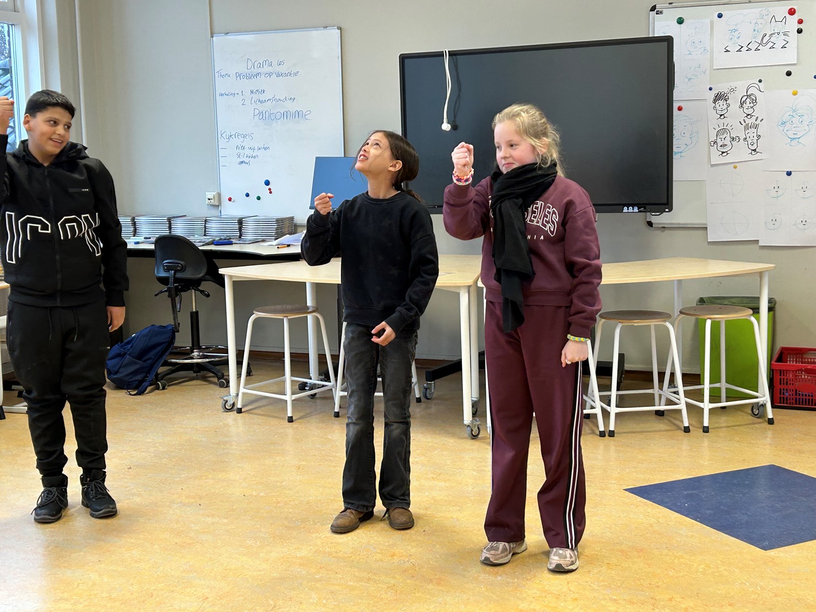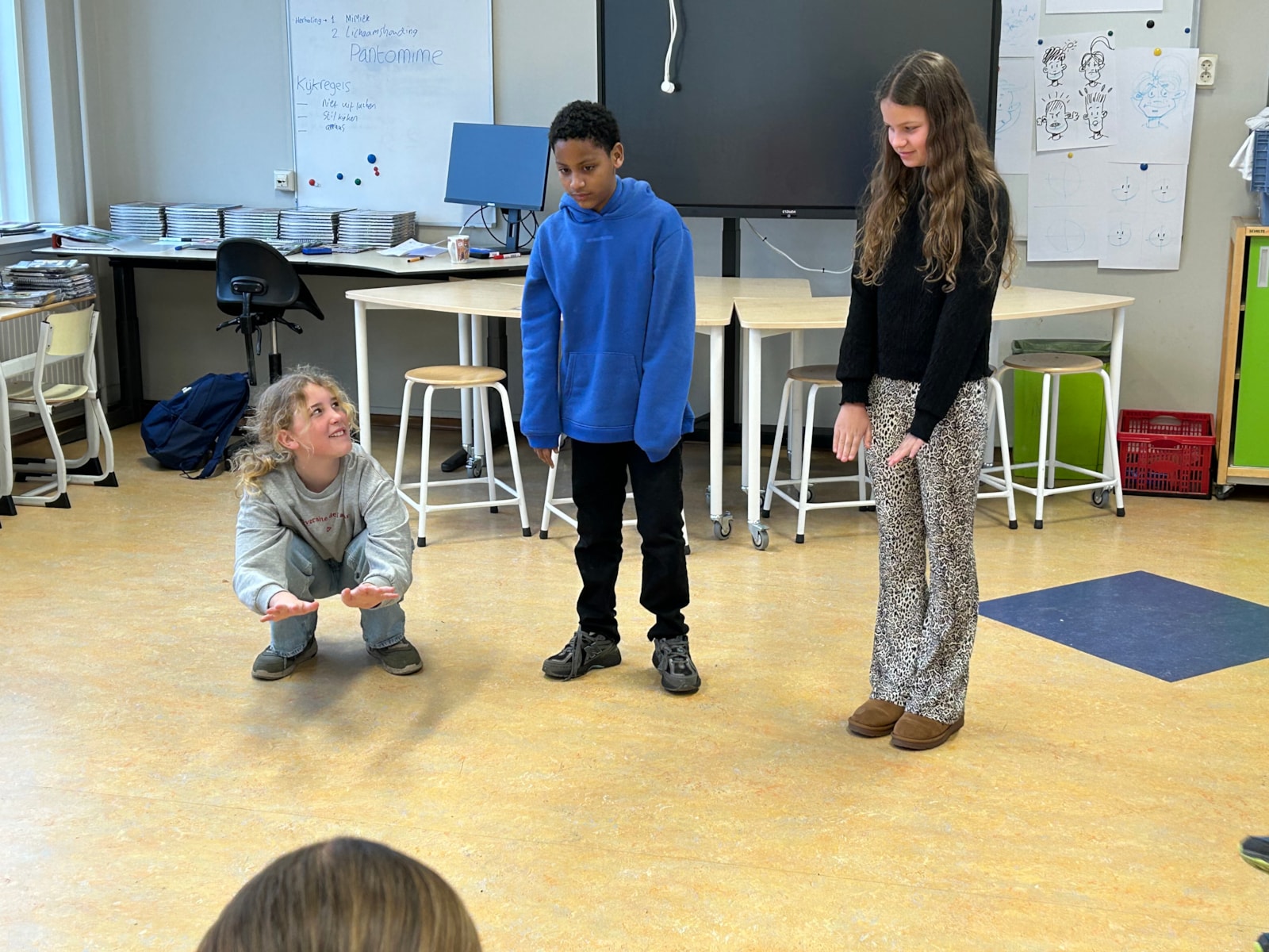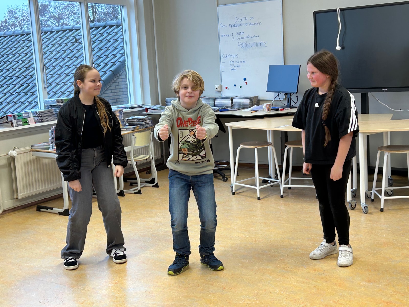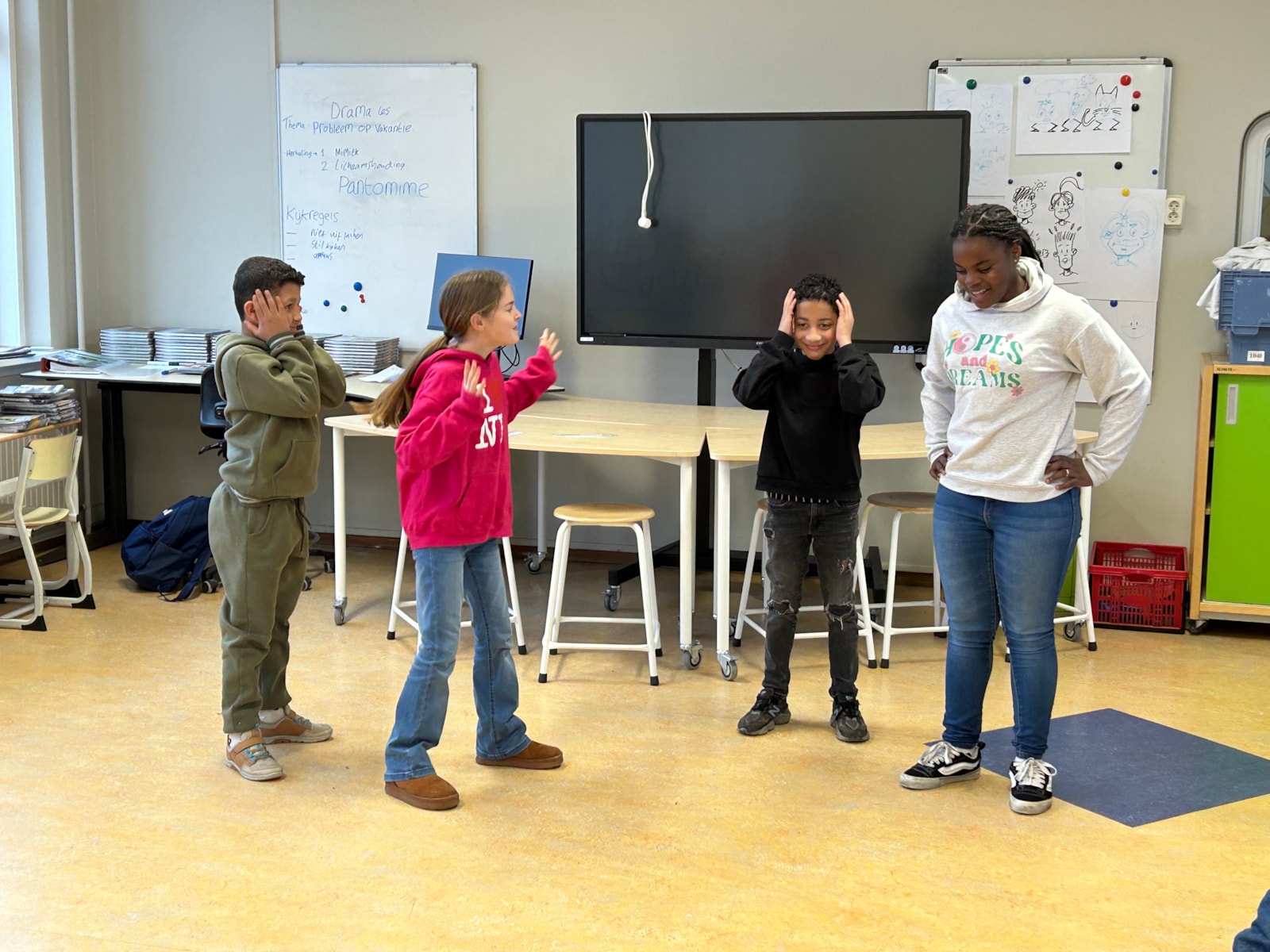Meester Nick gaf vandaag een dramales aan groep 7/8. Dit onder toezicht van iemand van meester Nick zijn eigen school.