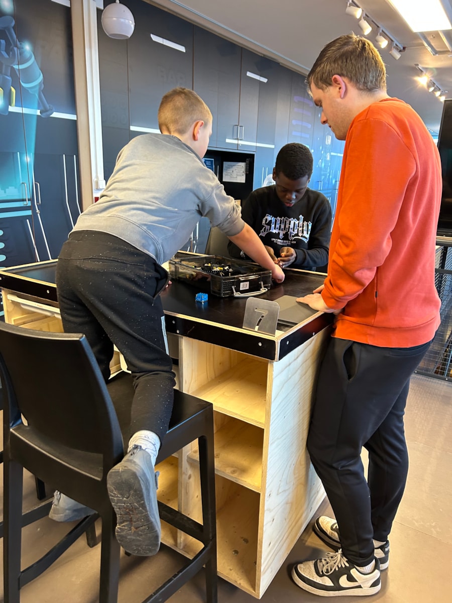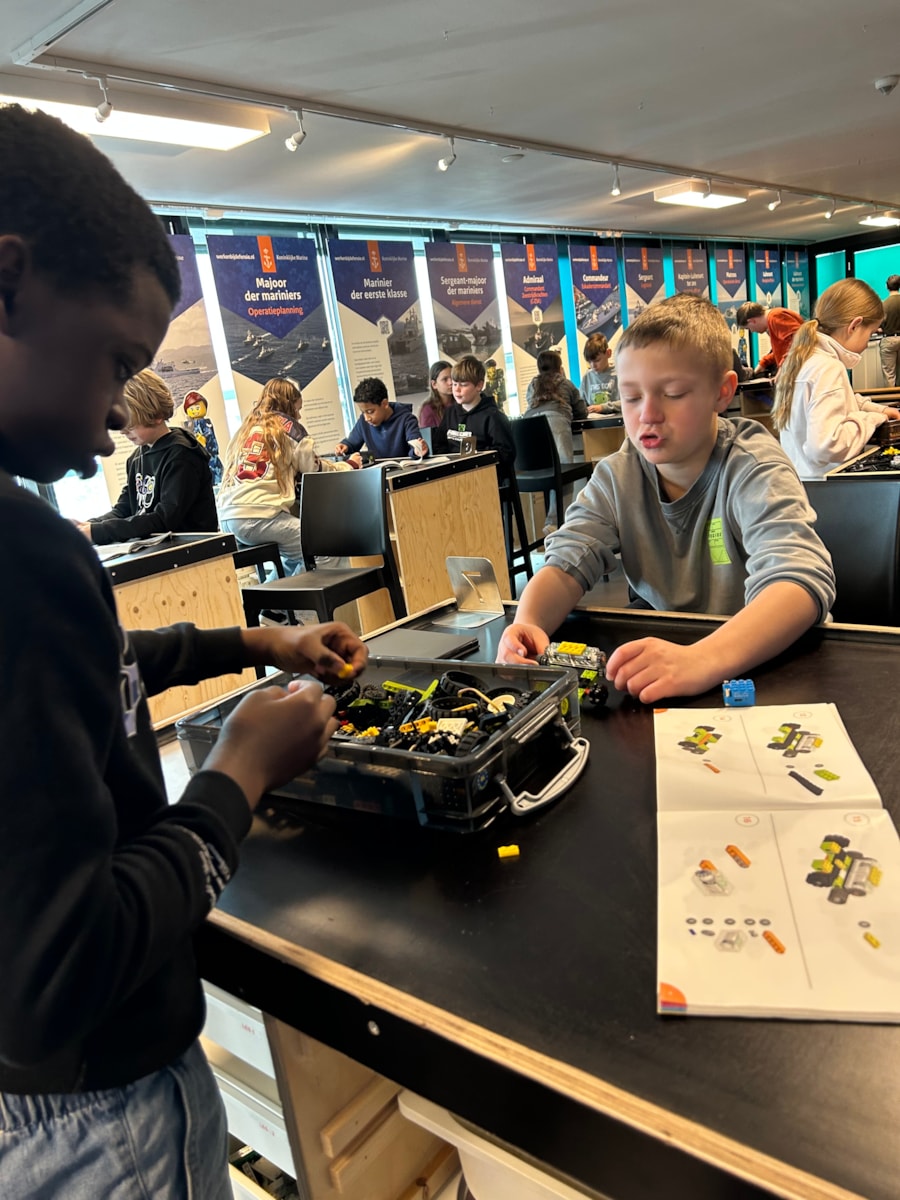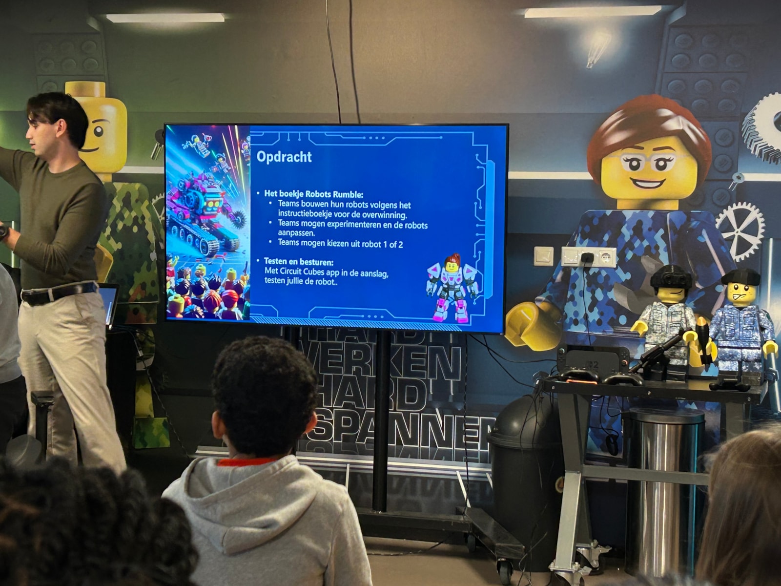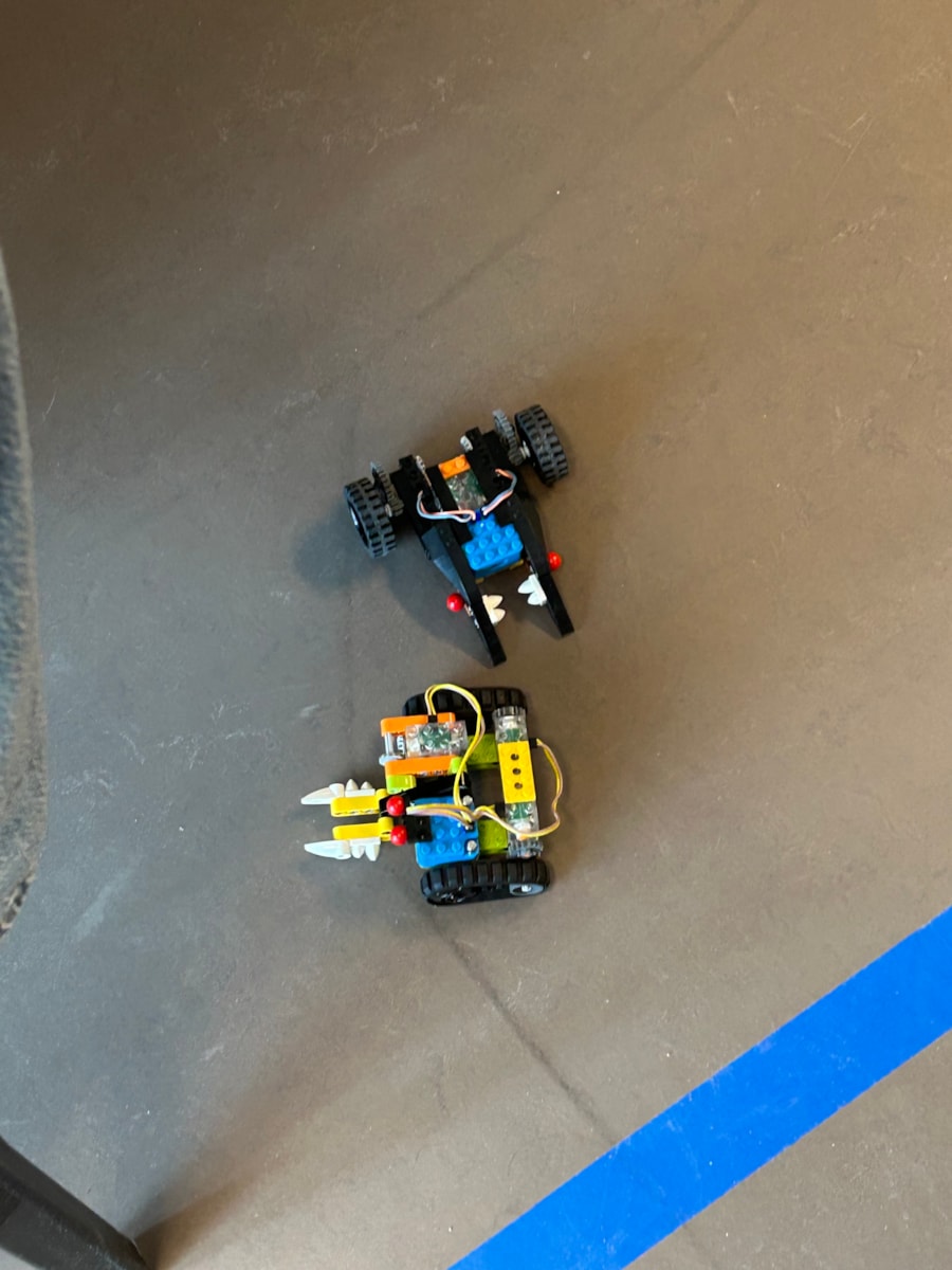Vandaag gingen we met de materialen van Robots Rumble aan de slag. We konden kiezen uit 4 verschillende robots. Aan het einde van de les mochten de robots een battle houden.