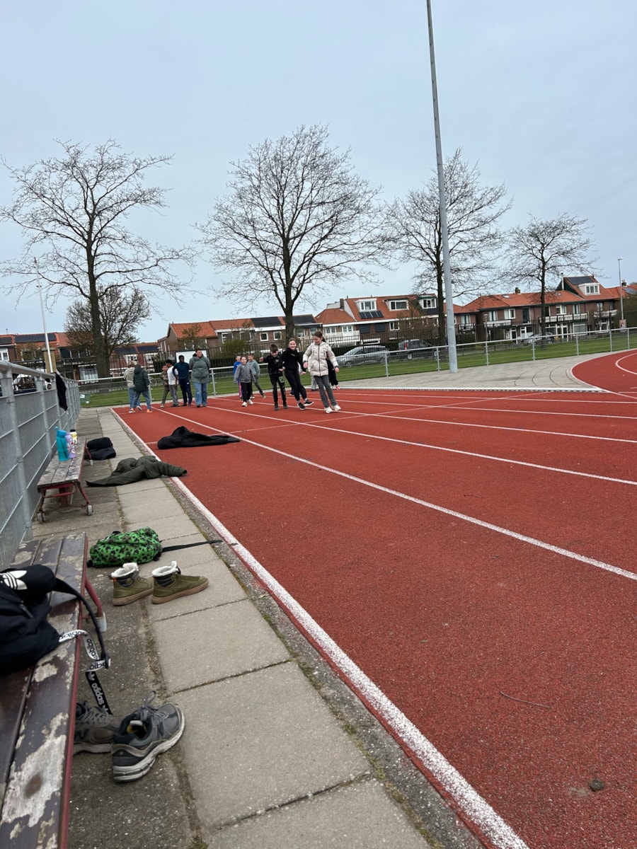 Hardlopen op de verschillende meters. Vrijdag 17 april staat de volgende les gepland. Hopelijk met mooier en warmer weer 🌞