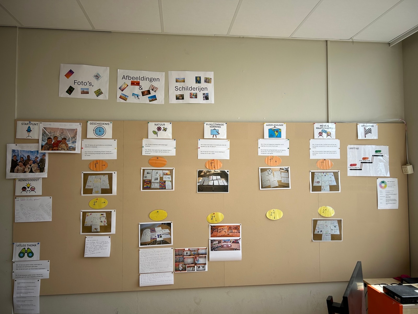 Afgelopen week hebben we het thema Foto’s, afbeeldingen en schilderijen afgesloten. We sloten af met het maken van schilderijen. Vanuit een foto een tekening maken en vanuit de tekening een schilderij maken. Wat zijn er mooie creaties gemaakt!