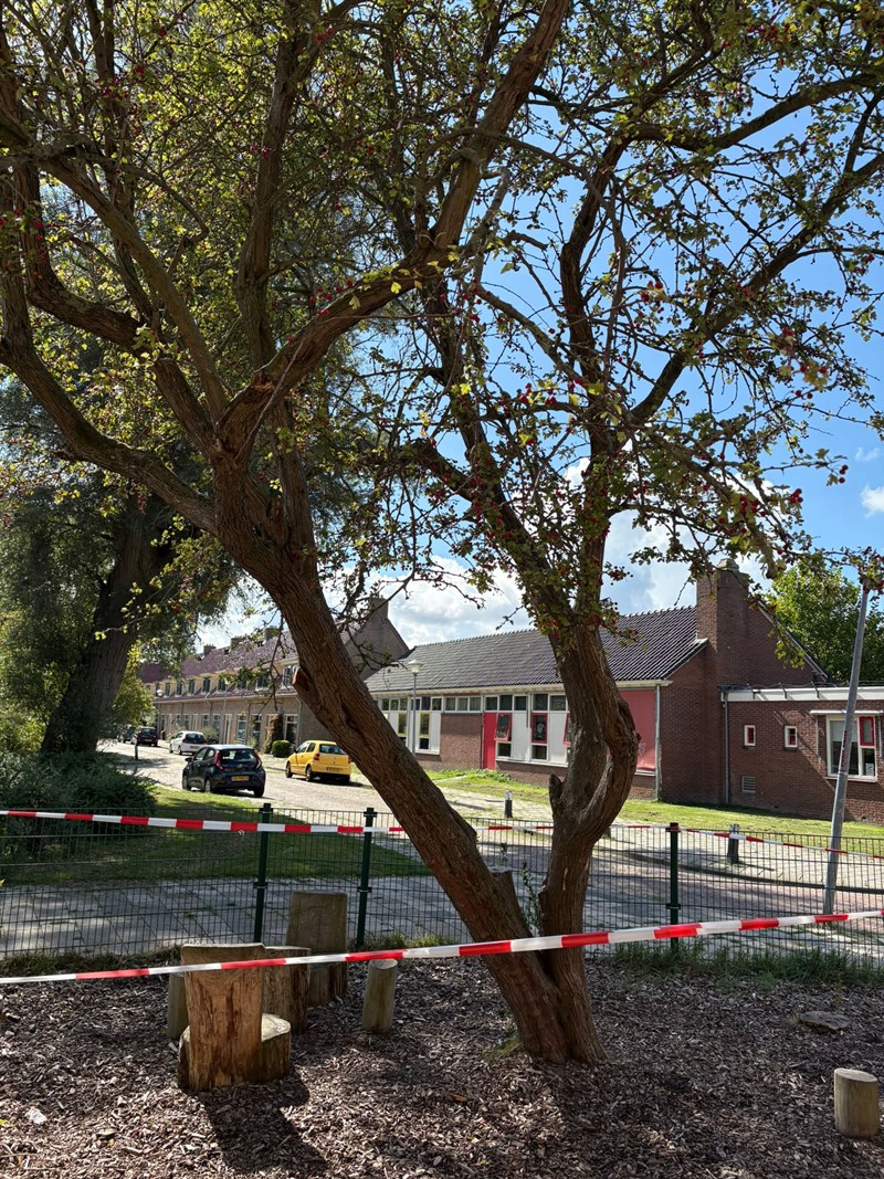 In de grote pauze hadden wij vandaag last van minimaal zo’n 7 wespen rondom deze boom. Voor de zekerheid hebben wij de boom afgezet. We hebben geprobeerd te kijken waar ze naar toe gaan, maar nog geen succes ondervonden hierbij.